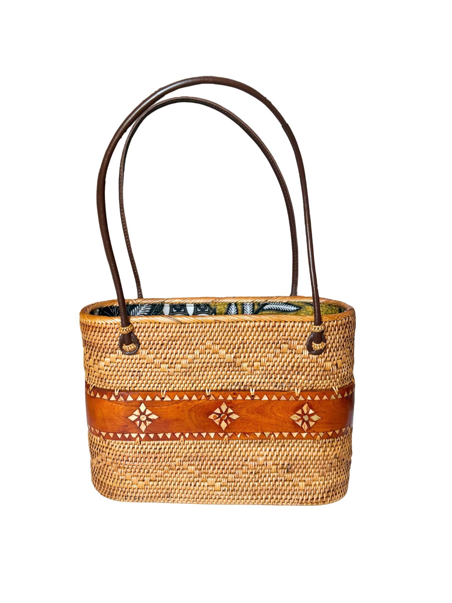 Our natural rattan bags are made from the ata grass in Bali. It takes 10 days to make each bag from drying the grass naturally under the sun for a few days and then smoked over coconut husks. Our women artisans then handwoven the bag and lined with unique batik cotton fabric